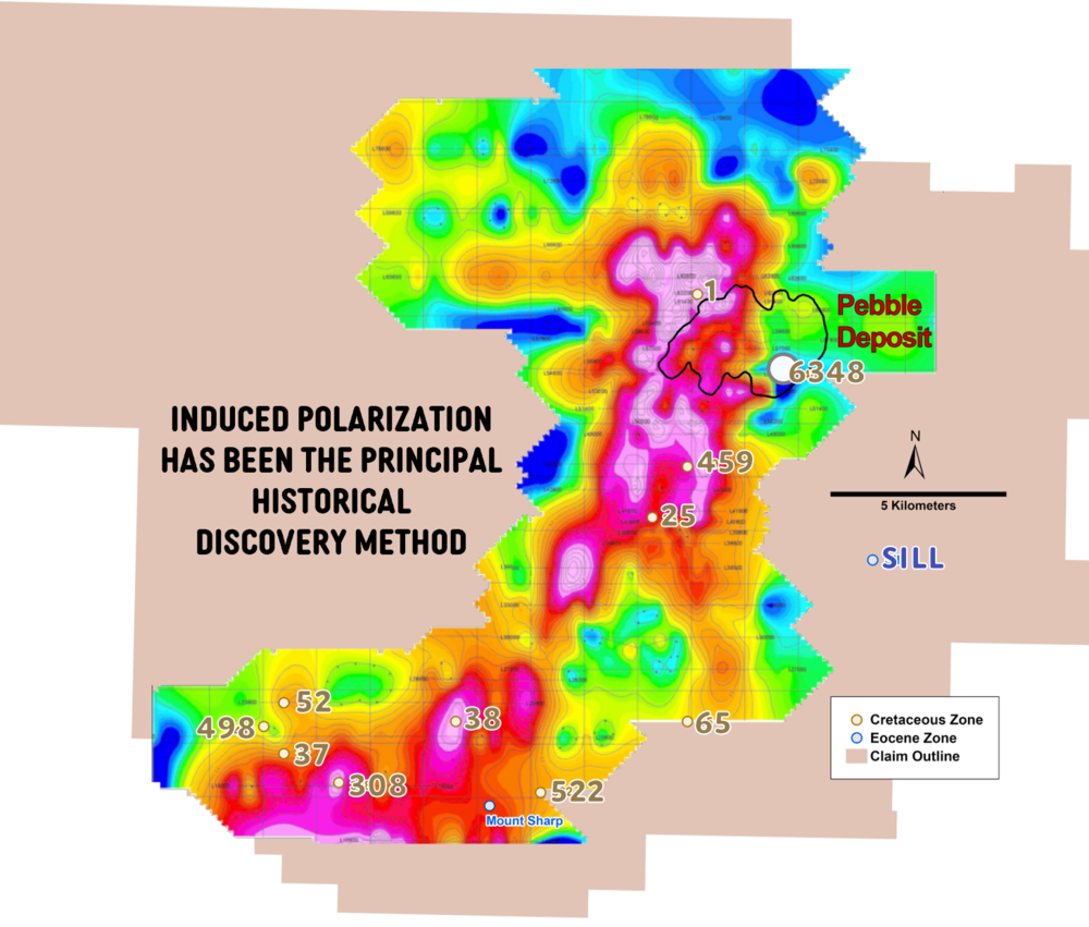 The potential to find and delineate satellite deposits elsewhere on the Pebble property is clear, and warrants follow-up drilling in the years ahead. In fact, 10 zones of Cretaceous mineralization, comparable in age to the Pebble deposit have already been discovered in the area. These include several porphyry copper as well as gold and polymetallic vein prospects. For example, at the 38 Porphyry Zone is a significant deposit of Cu-Mo-Au mineralization associated with quartz-sulphide veins and alteration within granodiorite, characterized by intersections of potentially ore grade mineralization over a 17- hole area. In addition, two identified zones of precious-metals bearing, vein-style mineralization of Eocene age occur on the property.